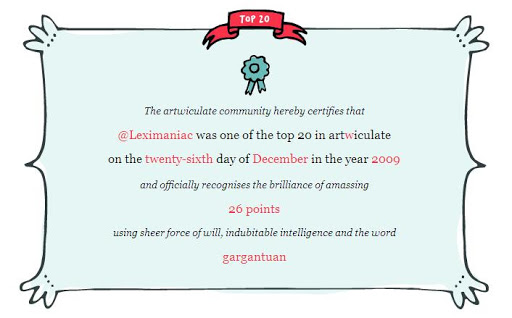 And the accolades keep on coming. Second day in a row on the top 20 for Artwiculate. What else could I ask for this Christmas? Well maybe for a PS3, which is exactly what we got. 🙂 Upcoming article: Corpora – Listings for EN monolingual corpora and EL monolingual corpora as well as